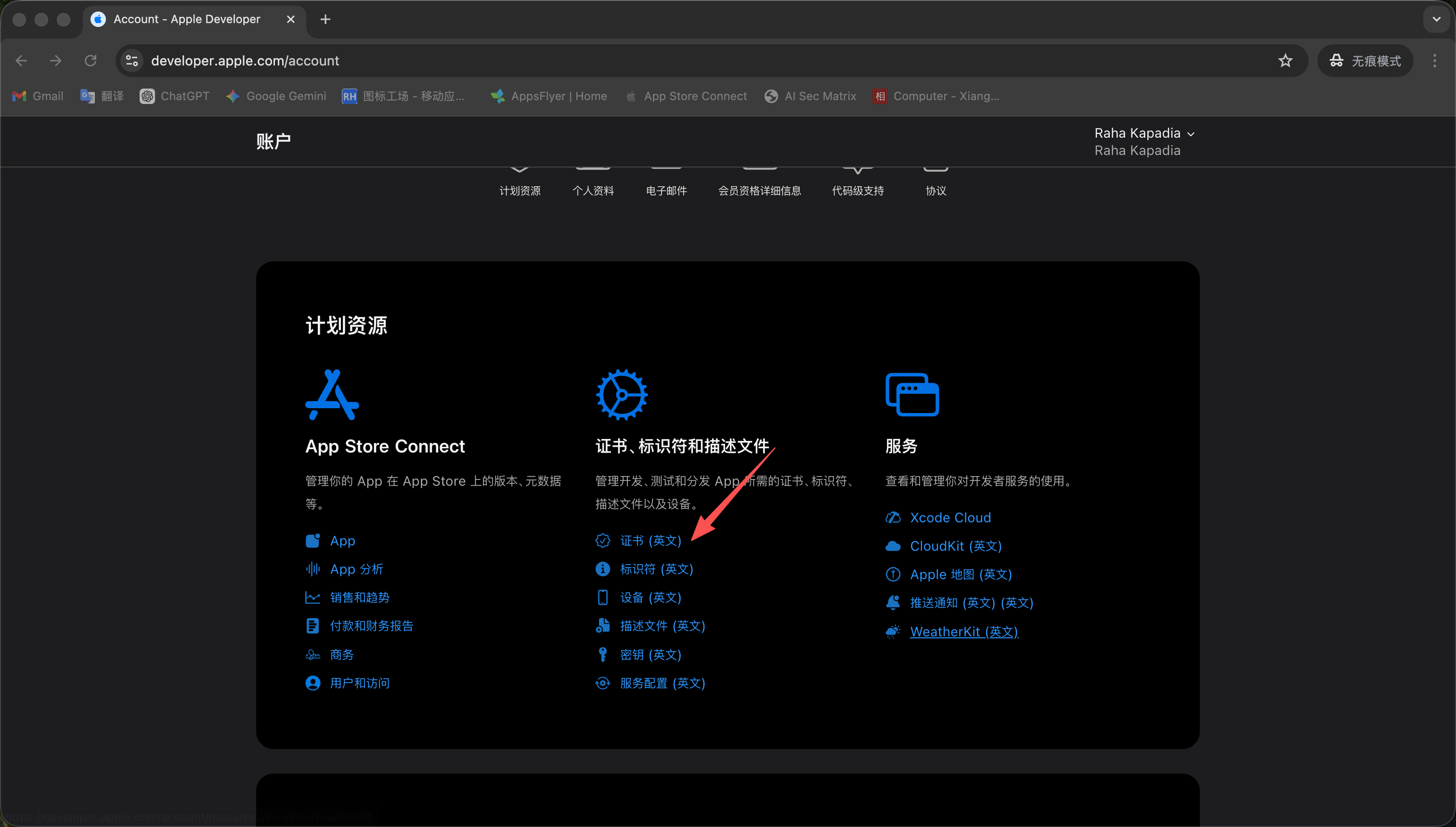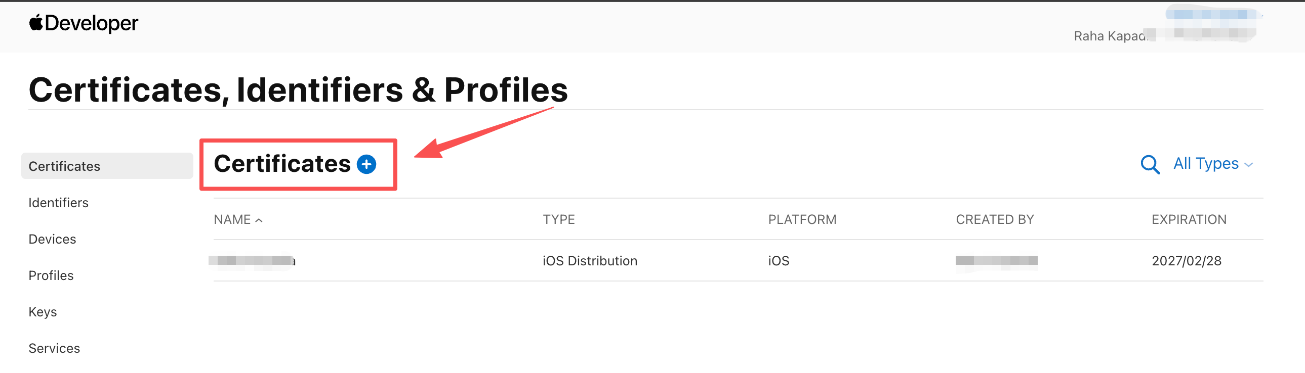 开始申请证书,点击Certificates的+号