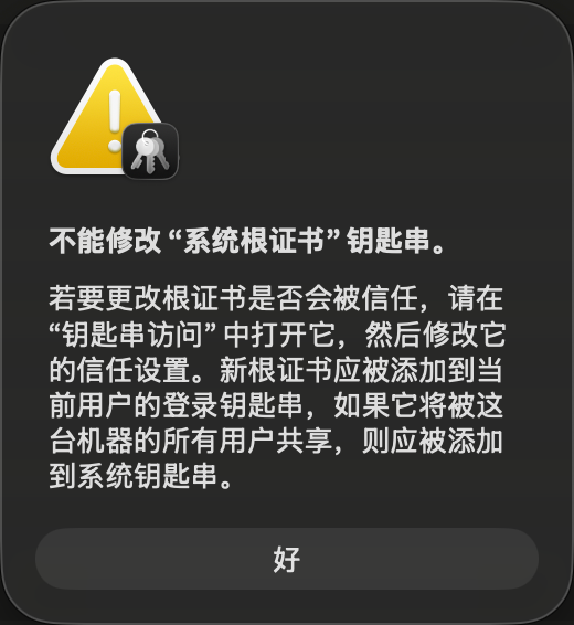 如果出现了这个弹窗,只需要在钥匙串中信任下就行了