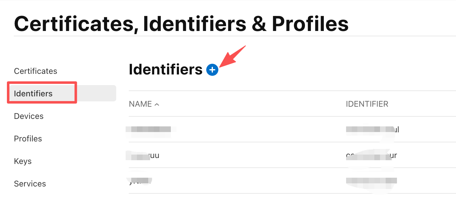 接下来来创建Identifiers(AppID,应用id),点击下面+号