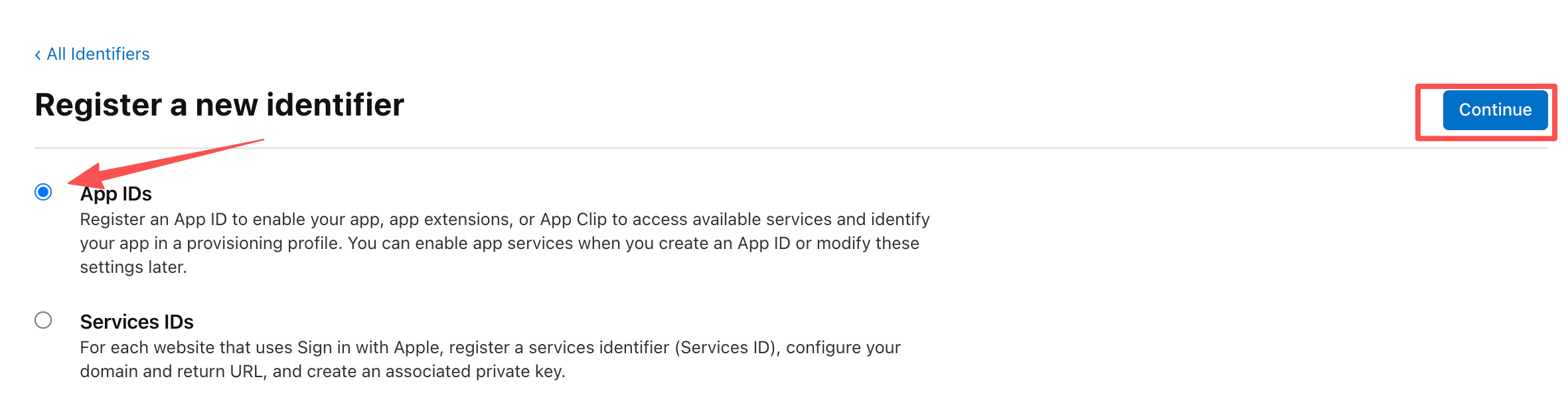 选择App IDs继续