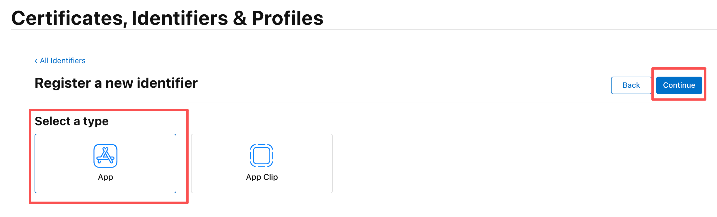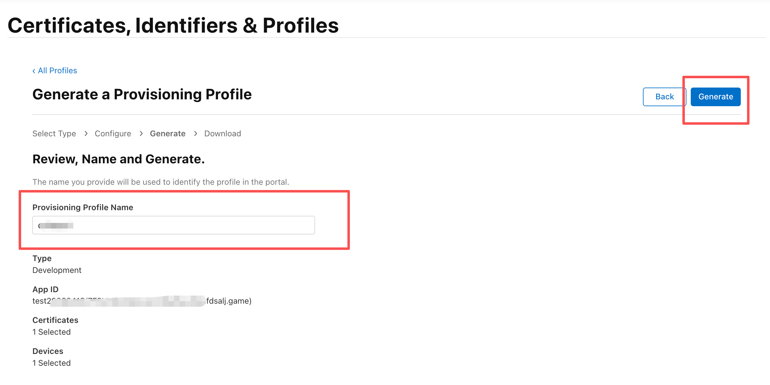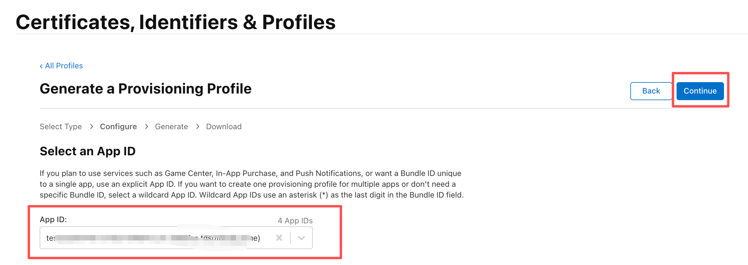 选择之前创建的Identifiers,即AppId