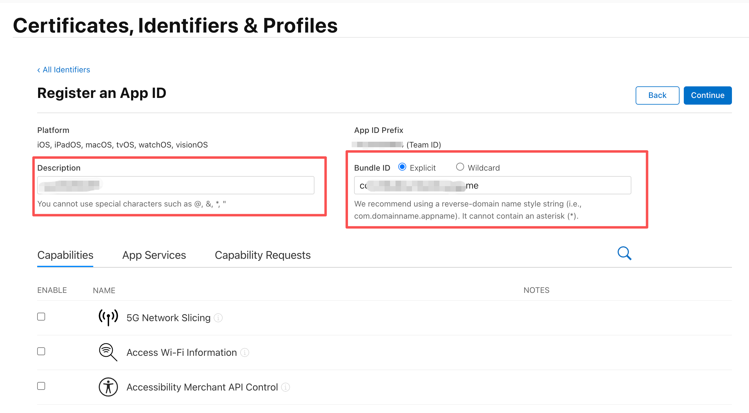 这里还有一个需要注意的地方,Bundle ID选择这里,有Explicit和Wildcard,这两者有什么区别,要怎么选择