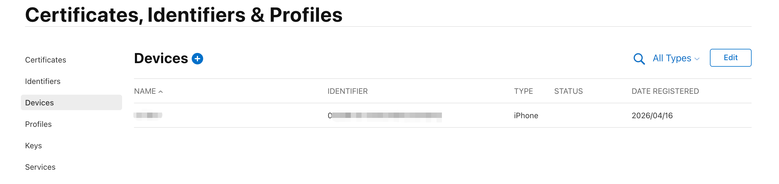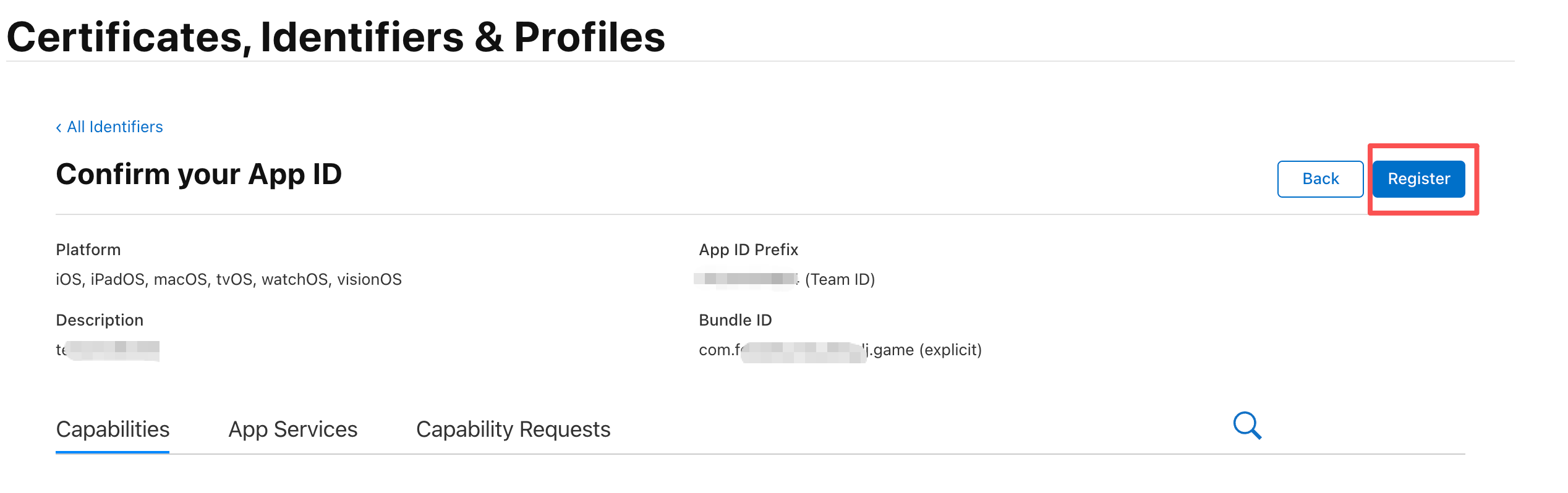 确认信息后,点击注册就可以在Identifiers列表中看淡到你创建到Identifier了