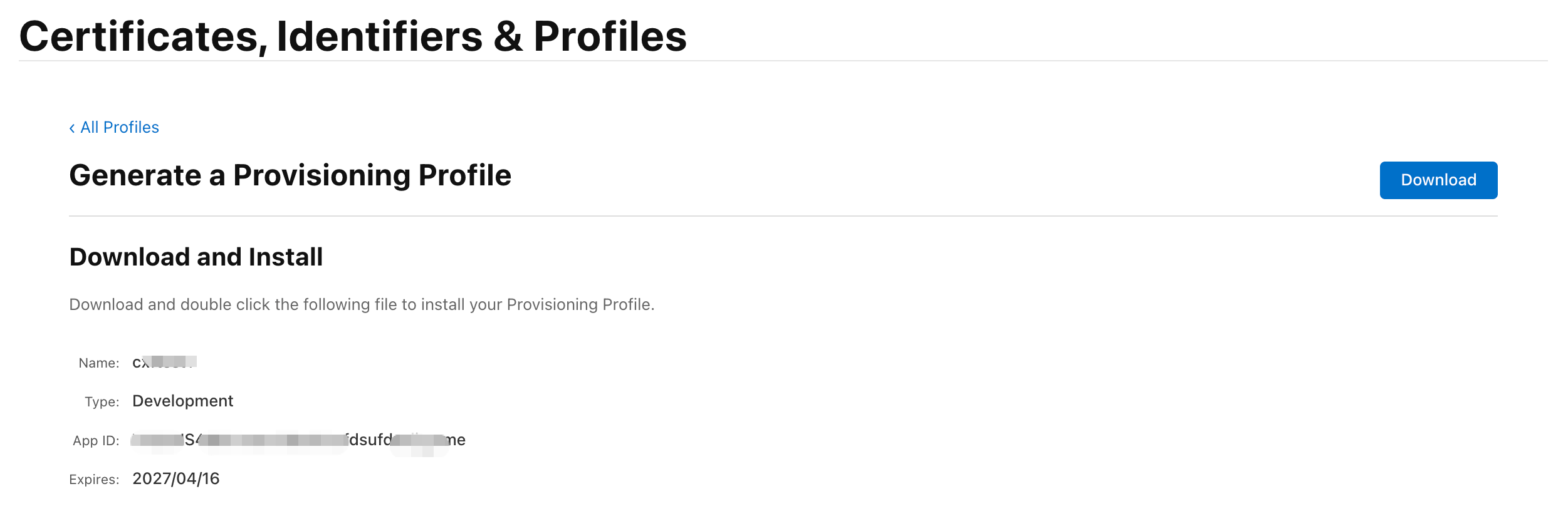 确定好信息后下载下来,后面后缀名为mobileprovision