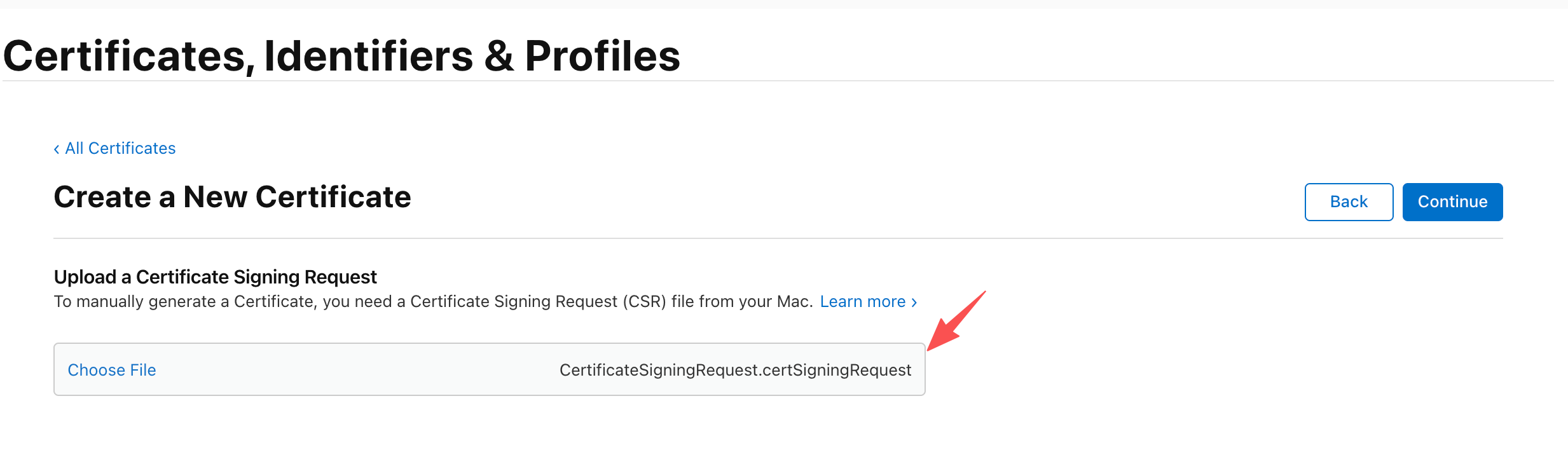 然后回到网页,选择刚刚申请的CSR文件